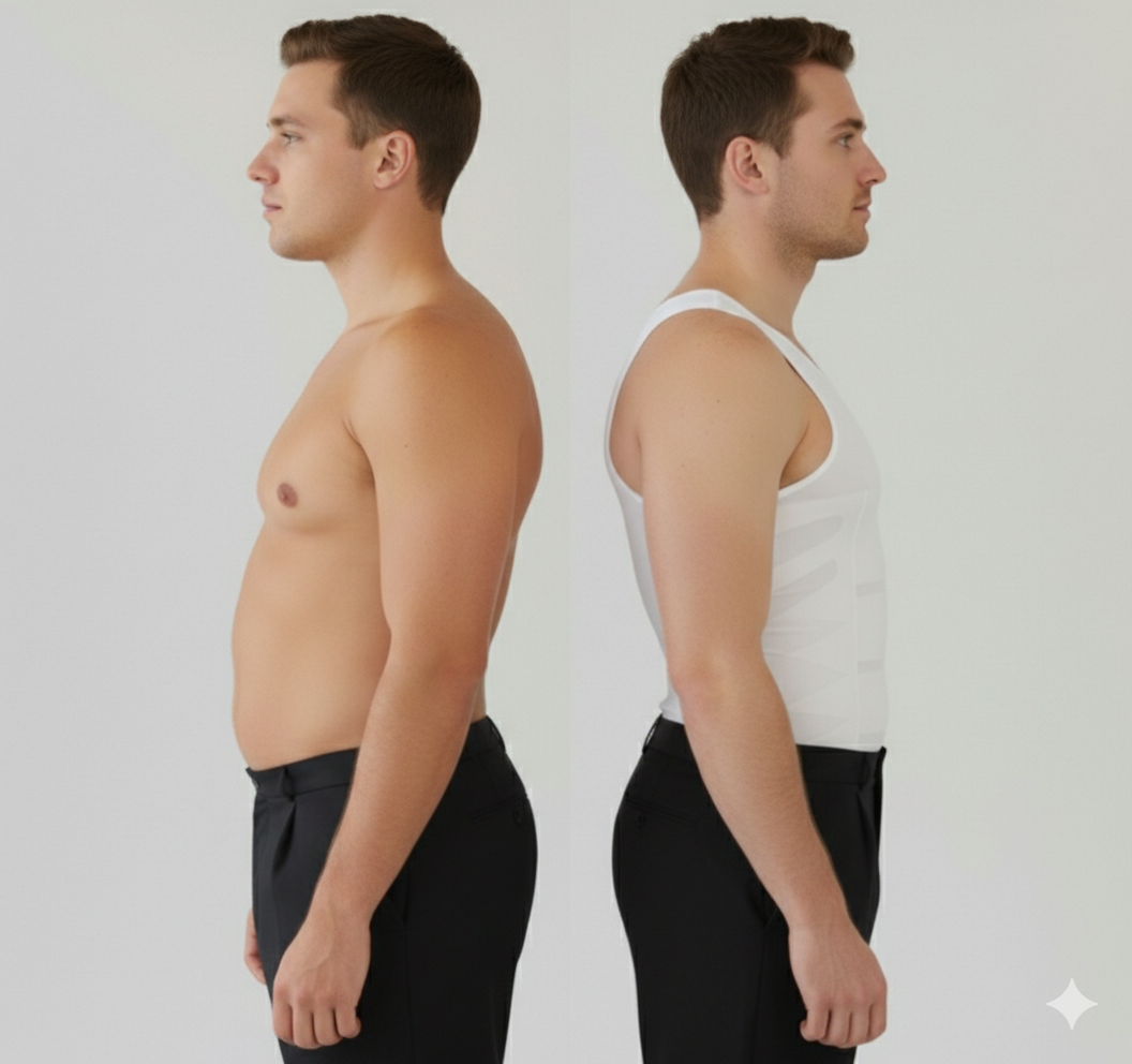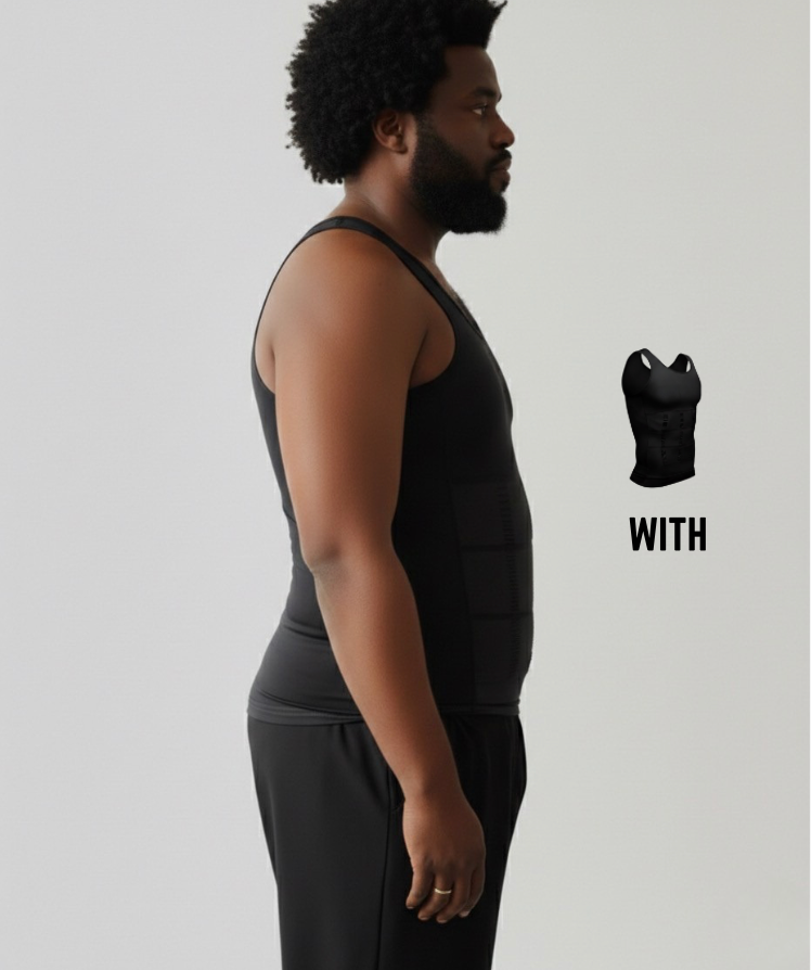 Engineered for confidence, this compression tank smooths your midsection, supports your chest, and creates a clean, sculpted look under any shirt. Lightweight, breathable, and built for all-day comfort — so you look sharp and feel in control wherever you go.